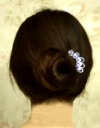 第五步:最后将上面的头发放下来,然后圈的发根的橡皮筋出,再用发夹固定就OK了,下面的头发也是一样的步骤,这样可以制造出层次感。看这款发型是不是看上去很显优雅呀?
