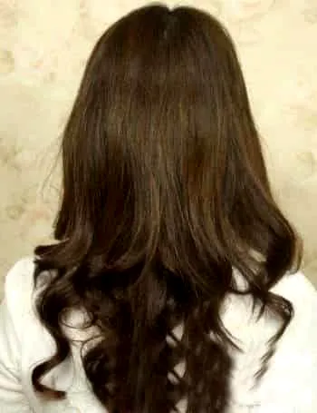 第二步:接下来将下面的头发用电热棒处理一下,达到卷发的效果。