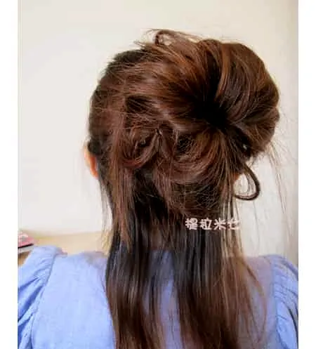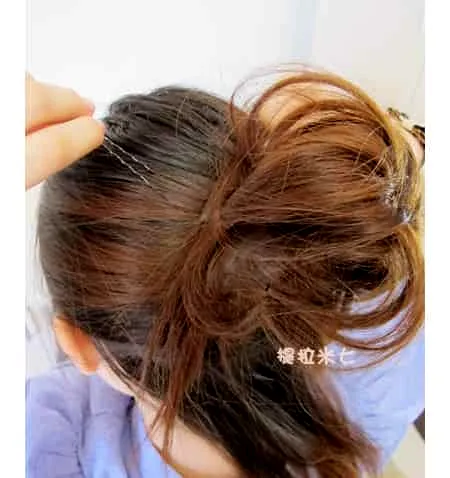 step4、花苞夹好的效果就是这样啦,越蓬松越好看哦!但是头发千万不能散哟。