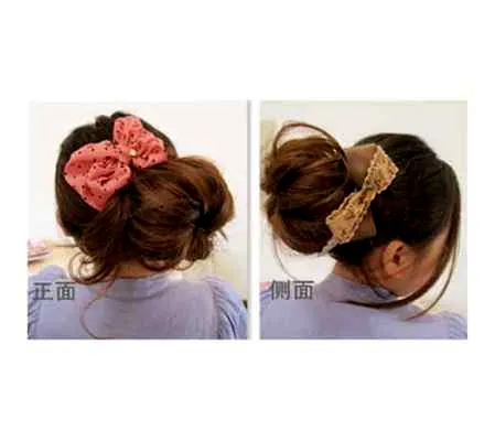 step6、将卷好的两束头发分别用U形夹固定到花苞的侧面。