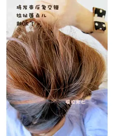 step2、将抓起来的发束交错拉扯,反复动作。乱点蓬点儿最好了。