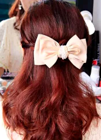 第一款编发:这是一款很甜美很淑女的编发。配上很淑女范的蝴蝶结,不管约会还是逛街或上班都非常合适!下面跟小编一起来学习一下吧!