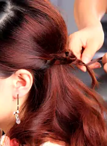第一步:两边各抓住一撮头发,卷成麻绳状。
