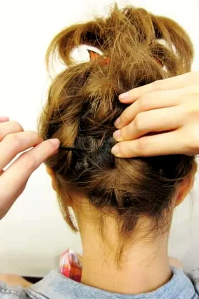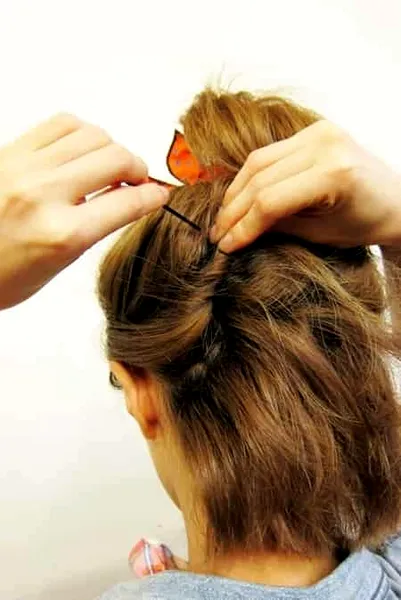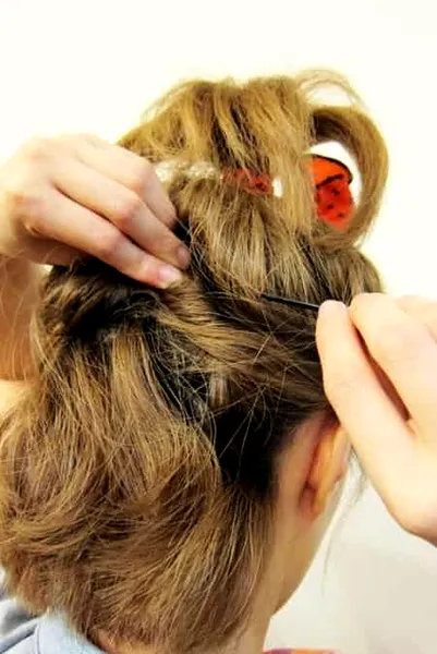 6、剩下掉下来的小搓头发也以同样的方式旋转固定上去以后哦!