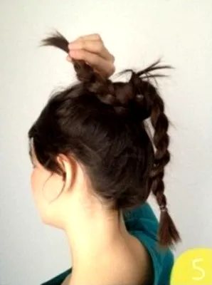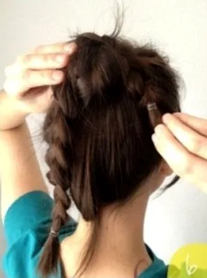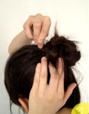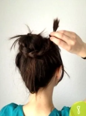 步骤八:然后我们绕另一根辫子,围着刚刚的**开始绕。