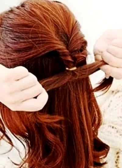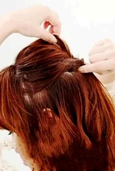步骤四:将翻转过去的马尾在微微的扯紧一些,让弧度更加显得好看一些。