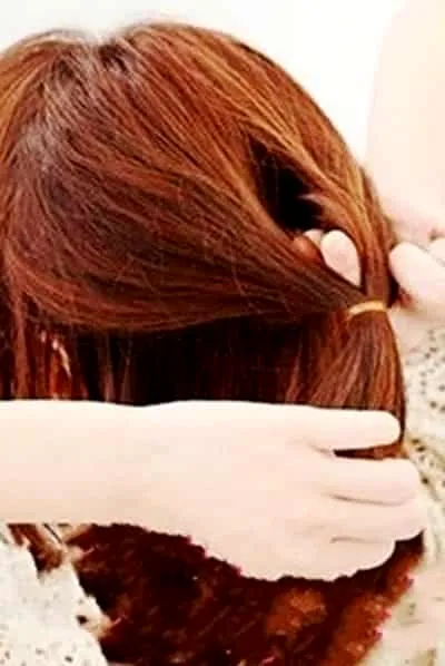 步骤二:将后脑勺的头发分成两侧,上半层的头发扎成一个小马尾,犹如公主头样的发型,用发圈固定好。