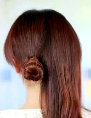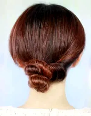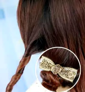 盘发步骤二:将扭转的发束盘成发髻用U型发夹固定好根部。
