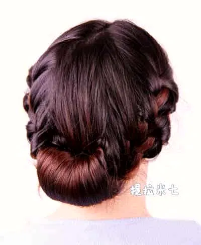 盘发步骤三:右侧的头发也按照同样的方式扭转。