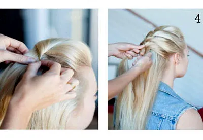 Step2:将刮好的头发由外往内旋转起来,用发夹固定好。再用发顶的头发编成三股发辫,就像鱼骨辫一样,将所有的头发都编进去。
