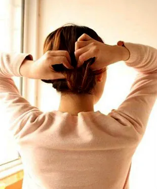 步骤八:用手抓起发尾皮筋固定处,把头发一直往上卷。