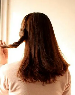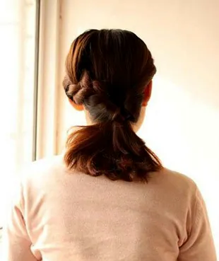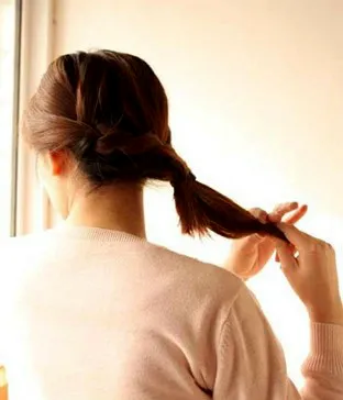 步骤三:将取出的少量头发编成发辫,用小皮筋固定好。