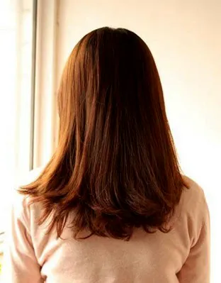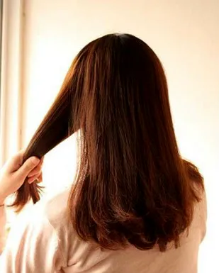 步骤一:图为造型前中长发发型,先将头发理顺。
