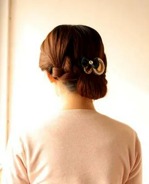 步骤九:再取黑色发夹将头发固定好。
