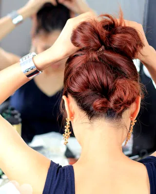 步骤八:再将剩余的少量头发,同样往上盘起。