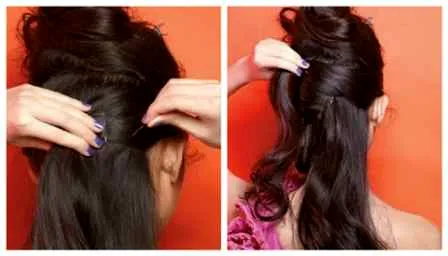 步骤3:将头顶的头发放下来,联合下面的头发,一起向里面窝。窝好后,在头发里面**U形夹,让这个形状保持好。把发带从下面缠绕上来,在头顶打好一个俏皮的结,一个简单发型就做好了!