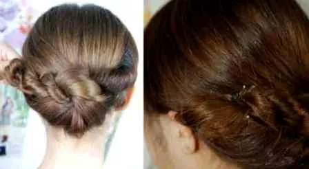 Step 5:将两股头发向左边缠绕。