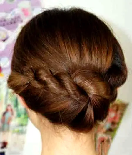 Step 4:大概扭转3-4下之后(具体根据头发的长度来定),用小皮筋固定好。