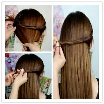 6、接着把将剩下的头发用手指抓到右边如图反方向拧转。