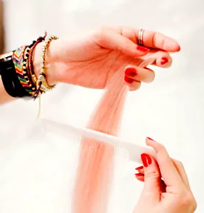 步骤2:将你已经选择的假发片用梳子认真的梳理好,发丝必须柔顺,如此才能在别在真头发上,显的自然而不突兀。