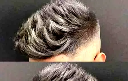 时尚看点:隐约一九侧分刘海,厚重及有层次感的刘海凸显了发型的设计感,稍稍抓乱的头顶区的头发,让整款男生发型充满立体丰盈感,而铜棕色发色也显得时尚型格。