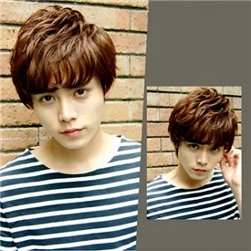 时尚看点:棕色染发的这一款长脸发型十分的时尚吸眼哦,加上层次感的烫发与蓬松感的打造都让整个短发发型充满了时尚设计风味,加上稍微内翘刘海的搭配,瞬间使得男生的气质变得清秀许多。
