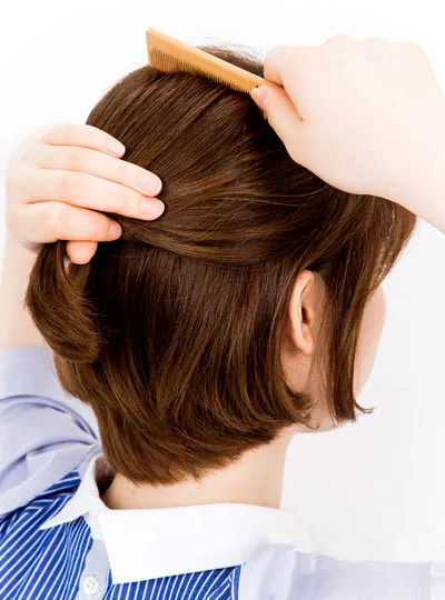 先用梳子将短发梳理通顺,为后面扎发做好准备。