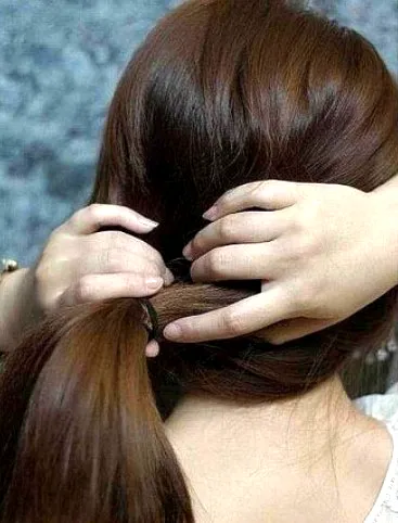 步骤三:将洞洞外面的马尾全部塞到里面去,往另一边塞哦!因为那边有足够的空间容纳多一些的头发,不会露出来。