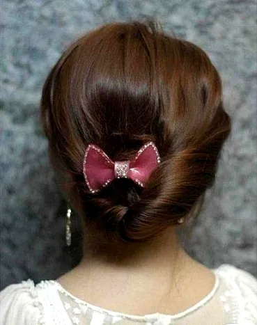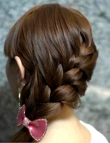步骤五:编完之后用小皮筋扎起来,再别上一个小小的蝴蝶结发卡就完成啦!