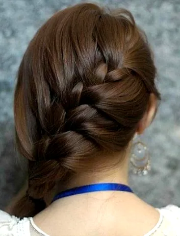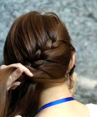 步骤四:然后将编过来的所有头发集合到一起,继续编松松得三股辫。