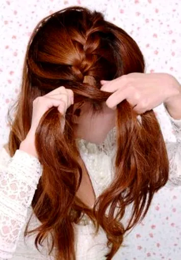 步骤一:在头顶选出三束比较粗的头发,往斜下方向拉,编三股辫。