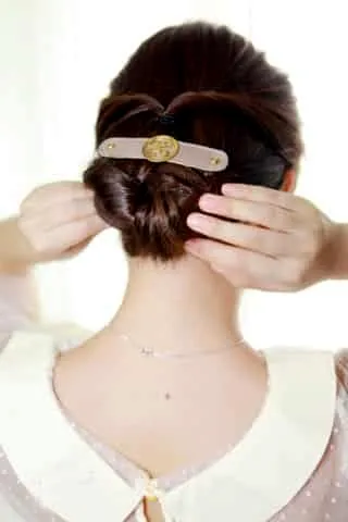 步骤六:翻好之后,如果头发是事前烫卷或者吹卷过的,那么甚至都不用发夹固定了。