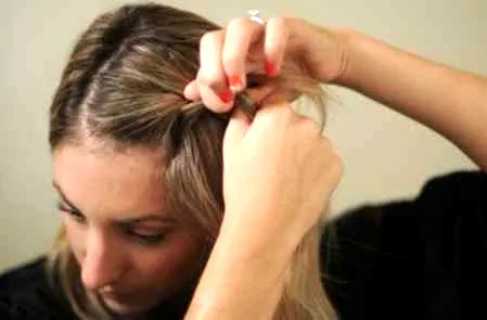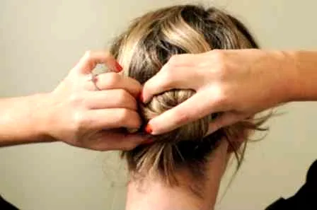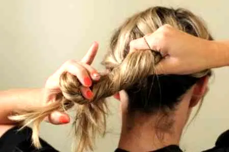 步骤四:将剩下的所有头发按顺时针方向拧转。