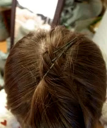 步骤六:把旋转好的头发中间靠后的位置夹入一个发卡。