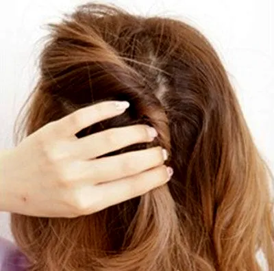 步骤二:将刚刚弄好的一束头发中选取靠左的一束,向后旋转并弯曲成蝴蝶结的形状,并用发卡固定在左侧。