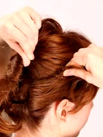 步骤二:把上个步骤扭转好的头发向上轻轻推,在头顶处稍稍的蓬起,让头型更加饱满。