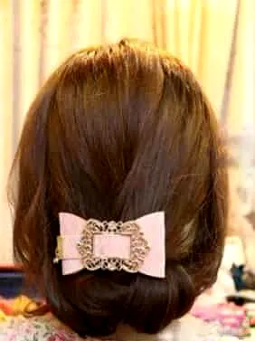 步骤六:放进盘发器后,卷起来,向内用黑色的一字夹固定好。