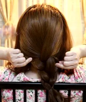 步骤三:分成三份后,以三股辫的方式开始编发,编好后,用皮筋扎好,用手轻轻把辫子拉松一点。