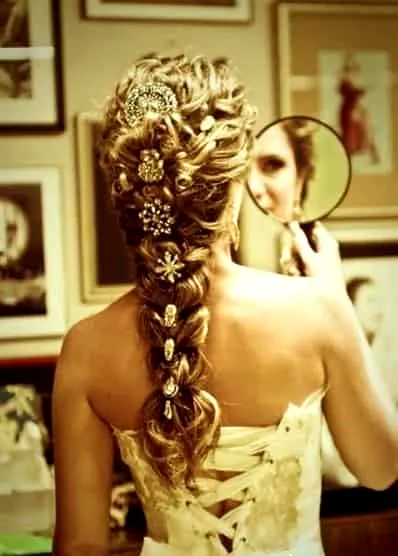 小编点评:精致的蜈蚣辫,配上复古的发饰,欧式王室风,优雅高贵气质。