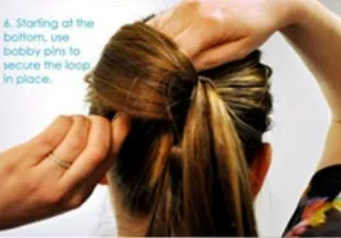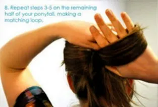 步骤十:基本的蝴蝶结雏形就出来了,接着用手把开始预留出来的发束提起。