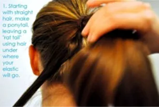 步骤一:先将头发梳理顺,再把头发全部用皮筋绑一个马尾辫,在马尾下面留一束头发出来。