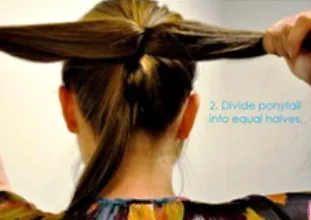 步骤二:扎好后,再用手把马尾辫从中间分成两份。