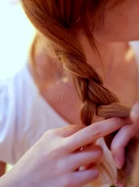 步骤二:接着把三股头发,编成普通的麻花辫。