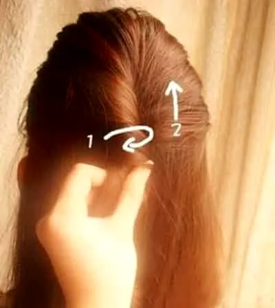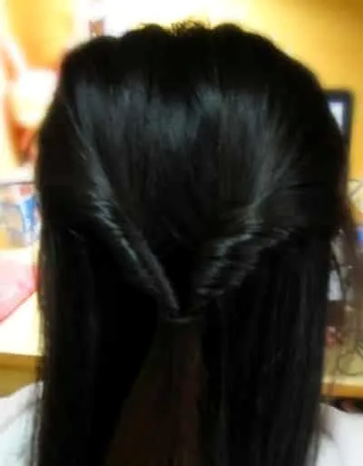 步骤一:取出一小股头发,然后按顺时针方向旋转,将头发拧成麻绳状。