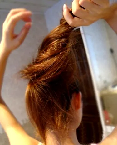 步骤五:拿起马尾旋转一下,注意不要转的太厉害哦!我们要保持蓬松的效果。