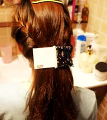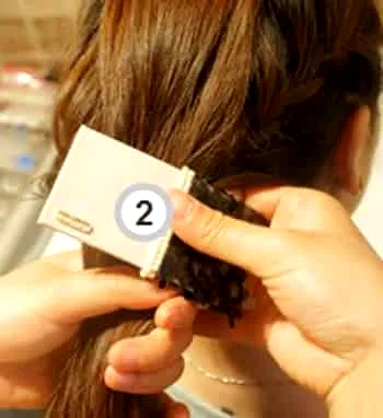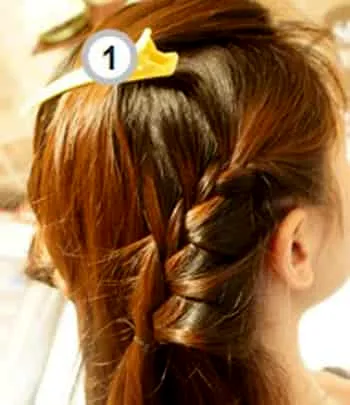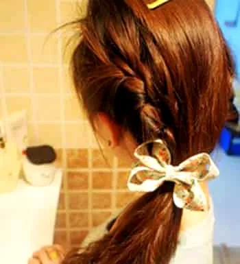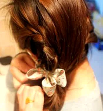 小编点评:织好辫子后,再将三分头发从发尾夹在一起。