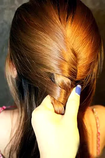 步骤二:在头顶处取出一部分头发,均分成两份,将两份均分的头发互叠。