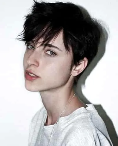 小编点评:凌乱顺直的短发,男生般的帅气短发让你逃脱束缚,女性细长的颈部也被显示出来,带有朦胧的性感。