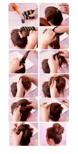第六步:一个小发夹不够,一圈下来要好几个,切记固定住。干净利索的袜子包包头就OK了。如果你喜欢,也可以在右上、左上或者下面,只要你喜欢的地方夹上一个装饰夹,这样就更有**风格了!