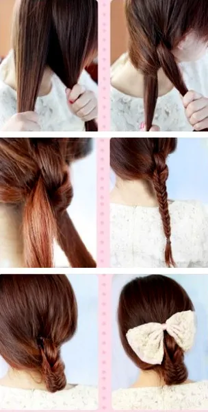 步骤六:最后戴上蕾丝蝴蝶结发饰,一款夏日清爽编发发型就完成啦!打造与众不同的魅力。